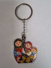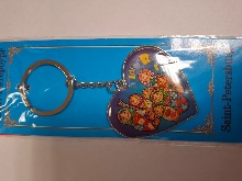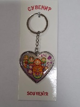 Брелок металл Сердечко Матрешки на фиолетовом I love Russia