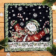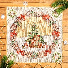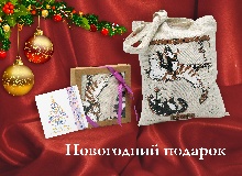 Подарочная сумка бежевая с новогодней открыткой "Кошарики на рыбалке"