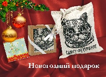 Подарочная сумка бежевая с новогодней открыткой "Санкт-Петербур. Кот в очках."