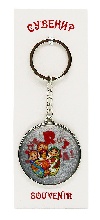 Брелок металл "круг Матрешки на сером I love Russia [46-9183]" [КЕ2-20008]