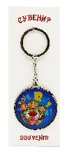 Брелок металл "круг Матрешки на синем I love Russia [46-9182]" [КЕ2-20010]