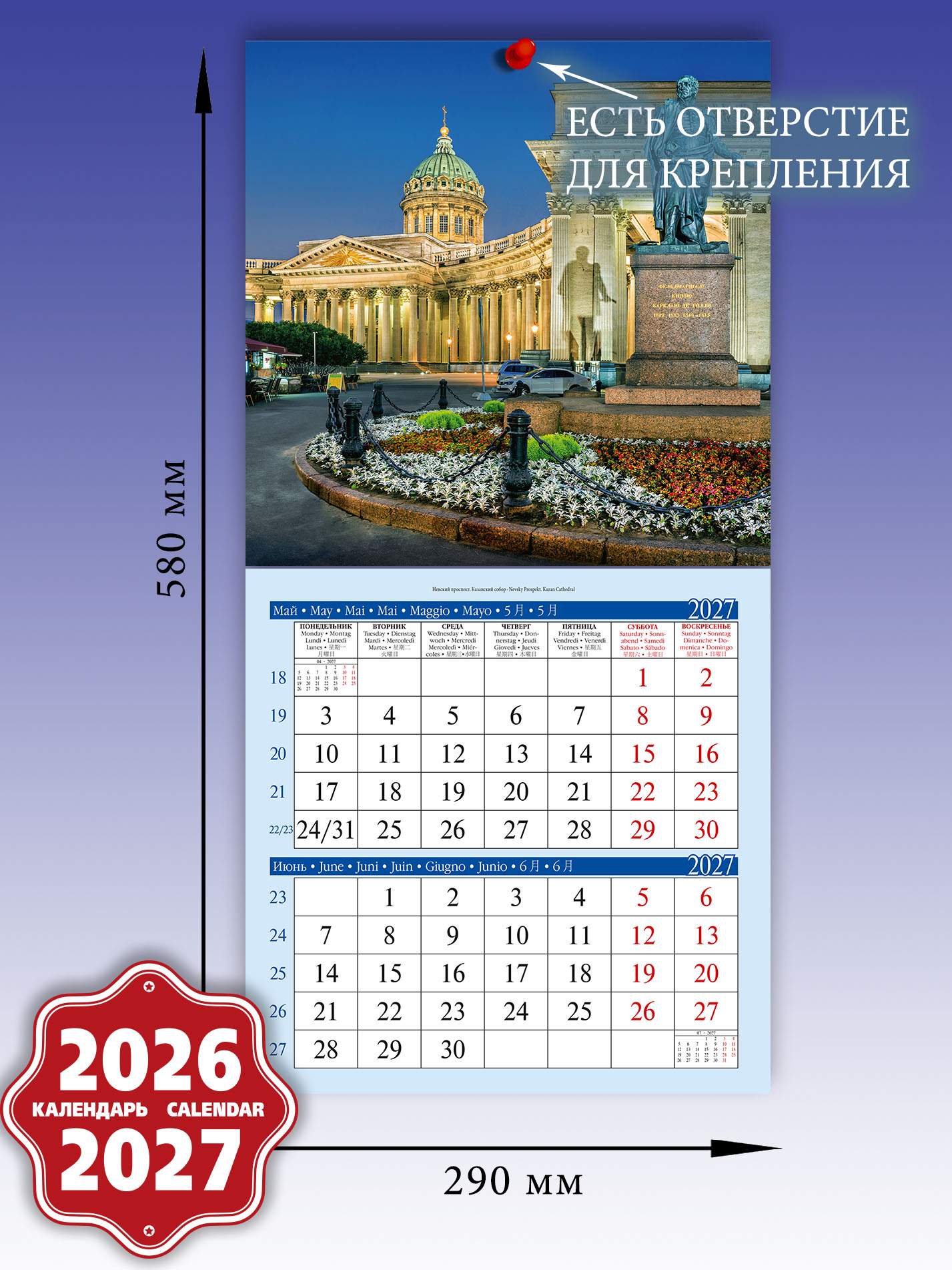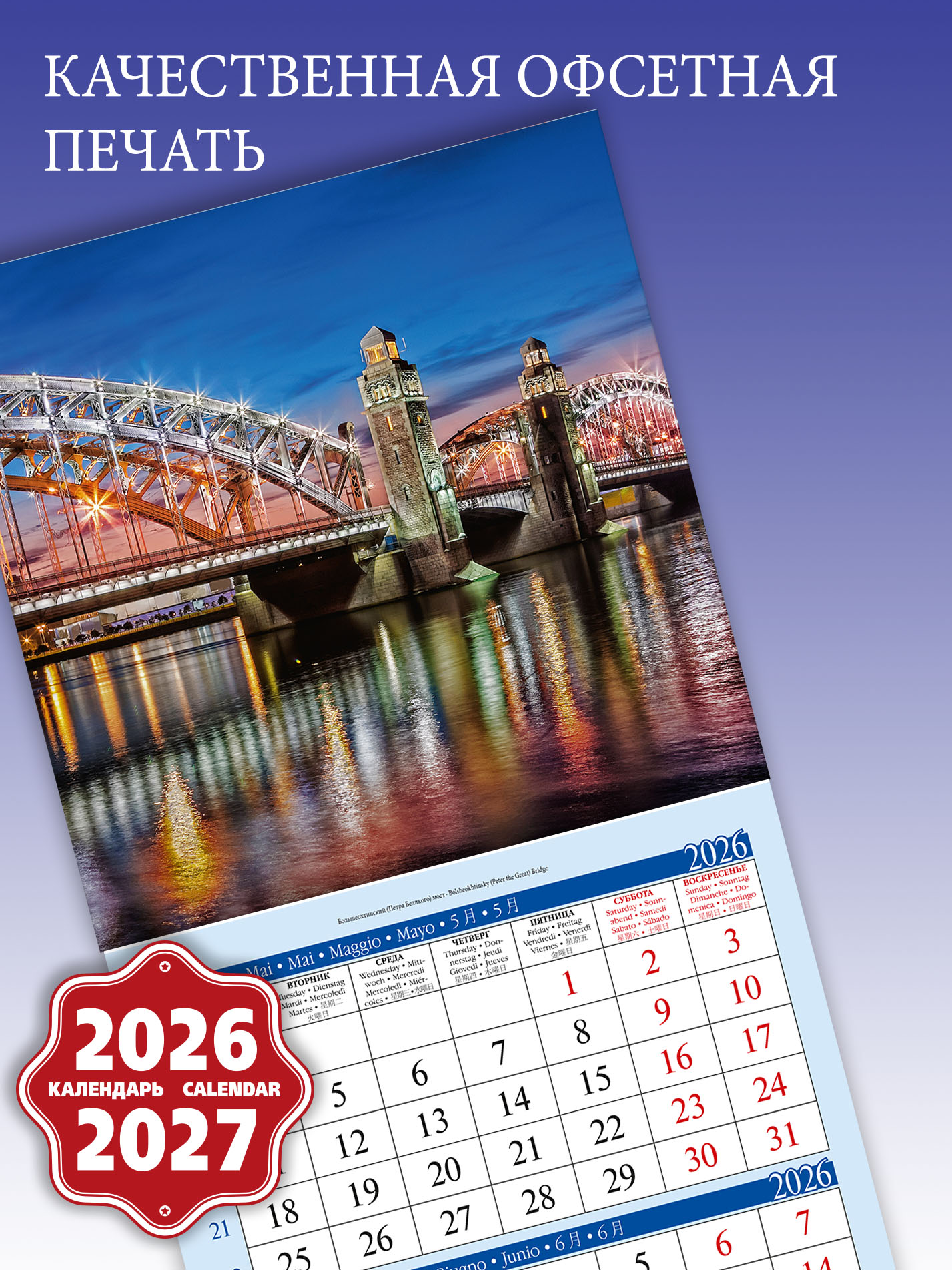 Настенный календарь " Ночной Санкт-Петербург" на 2026-2027 год - лучшее, что можно приобрести на память о посещении Северной столицы России.