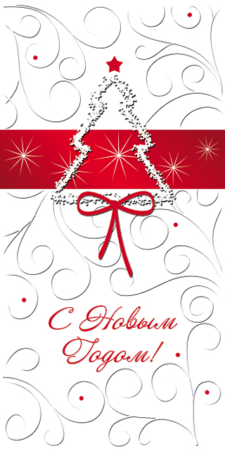 Технические характеристики: серебряная и красная фольга, частичный УФ-лак, конгрев, стразы, бантик из органзы, мишура