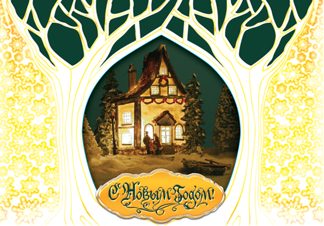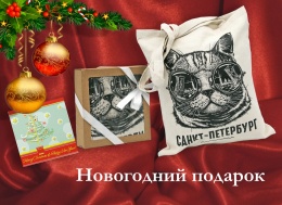 Подарочная сумка бежевая с новогодней открыткой "Санкт-Петербур. Кот в очках."