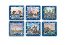 Подставка под горячее 6 шт. Акварель-1 (Синяя рамка) 006 [ST14-28526]