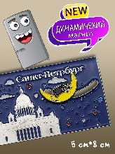 Магнит металл динамический Санкт-Петербург Кот на Луне. серебро [MG018]