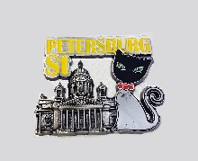 Магнит металл объемный Исаакий собор кот СПб серебро [MA1-20010]
