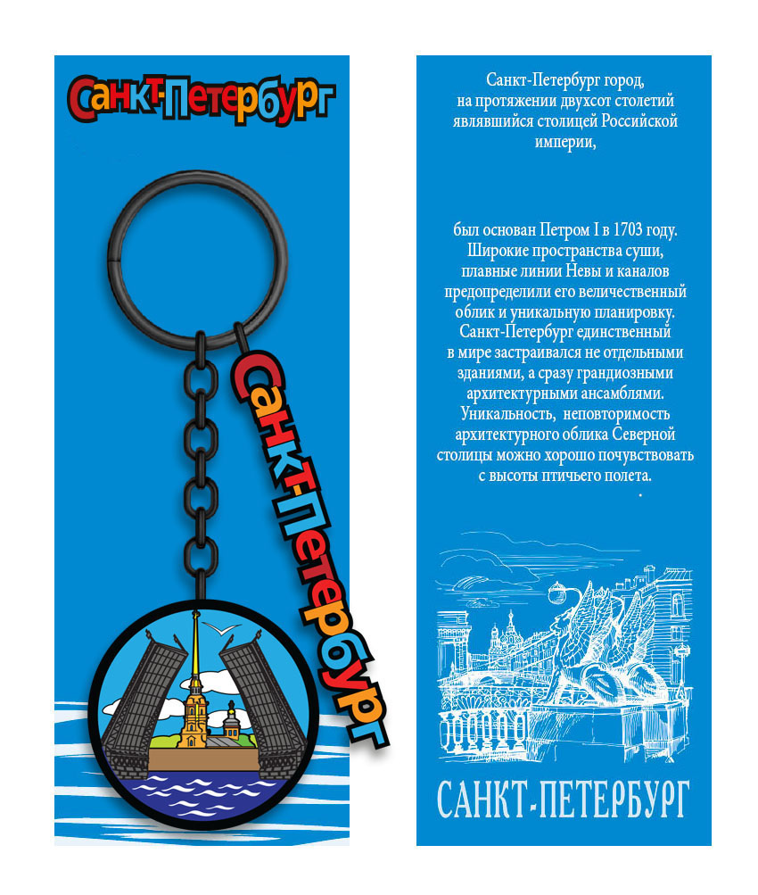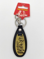 Брелок металл/кожа Коллаж СПб Колонна/Мост/Корабль [КЕ1-00077]