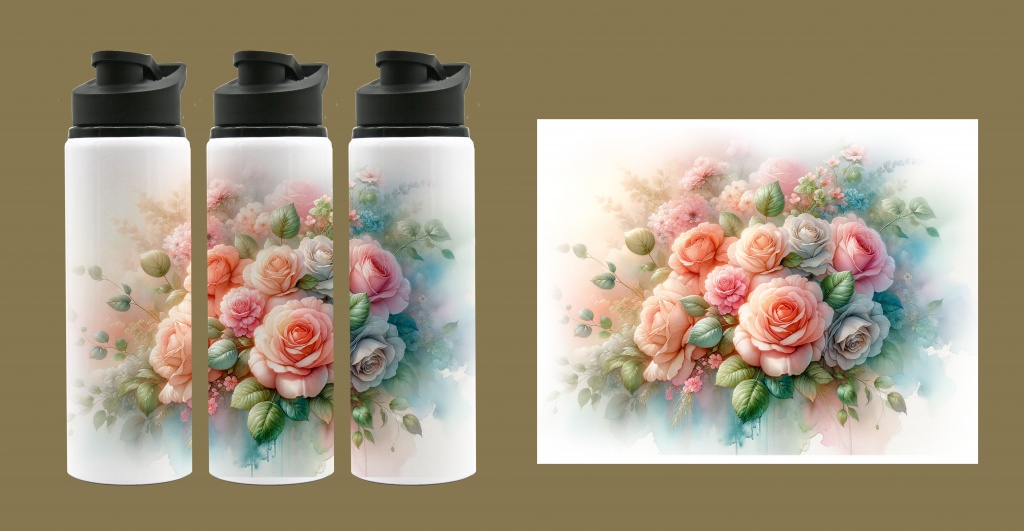 Бутылка алюминиевая для воды Цветы. Розы  Б -028