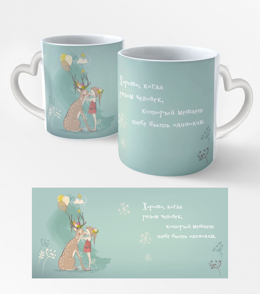 Кружка сердечко Девочка и олень  (00293С)