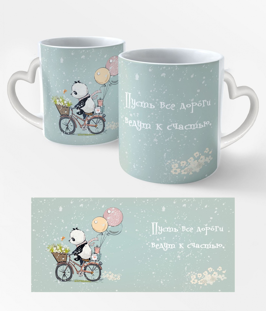 Кружка сердечко Панда на велосипеде (00292С)