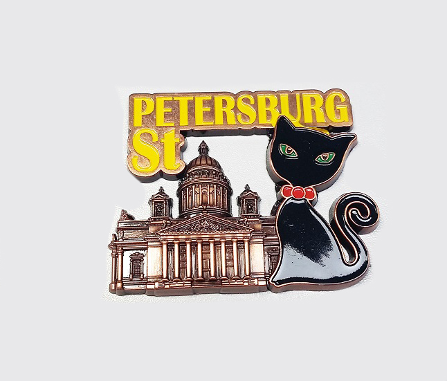 Магнит металл объемный Исаакий собор кот СПб медь [MA1-20004]