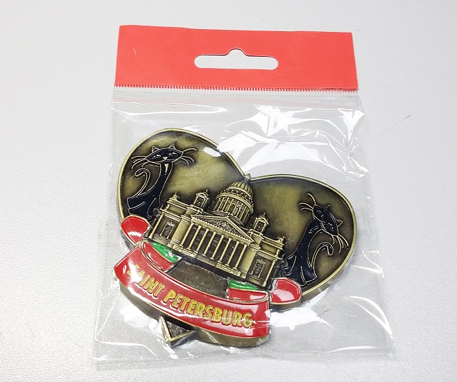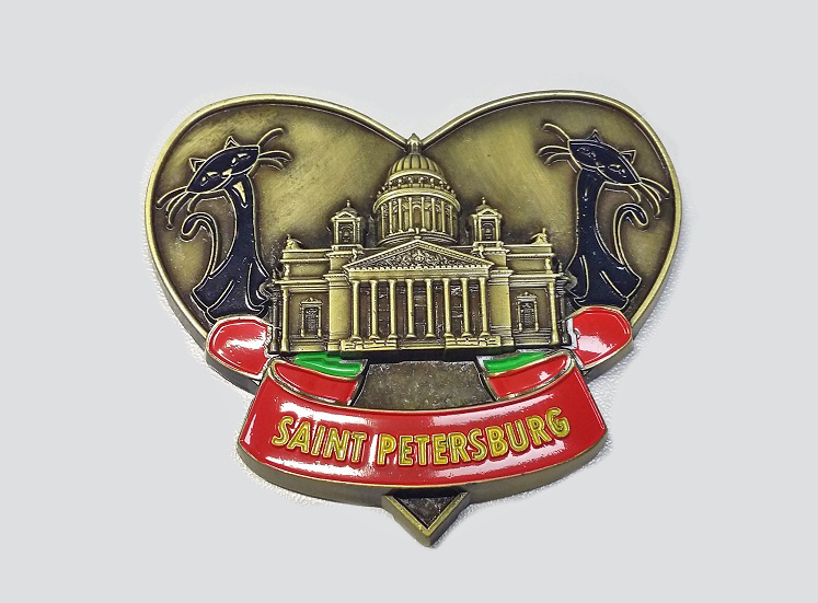 Магнит металл объемный Исаакий+коты латунь [MA1-20007]