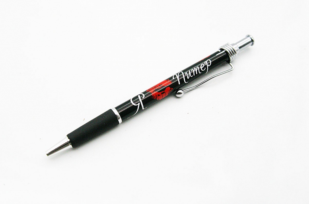 Ручка с резинкой Поцелуй чёрная (эт.) [РР2-20016]