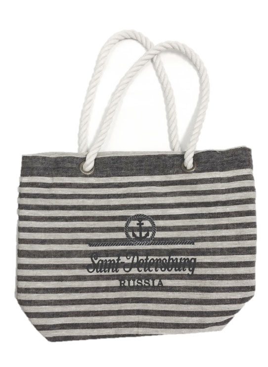 Сумка с вышивкой большая льняная чёрные полосы
