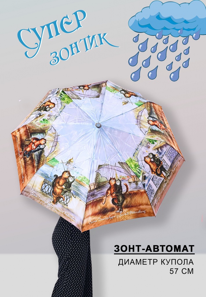 Зонт автомат Коты 6/50 [UM11-810-10008]