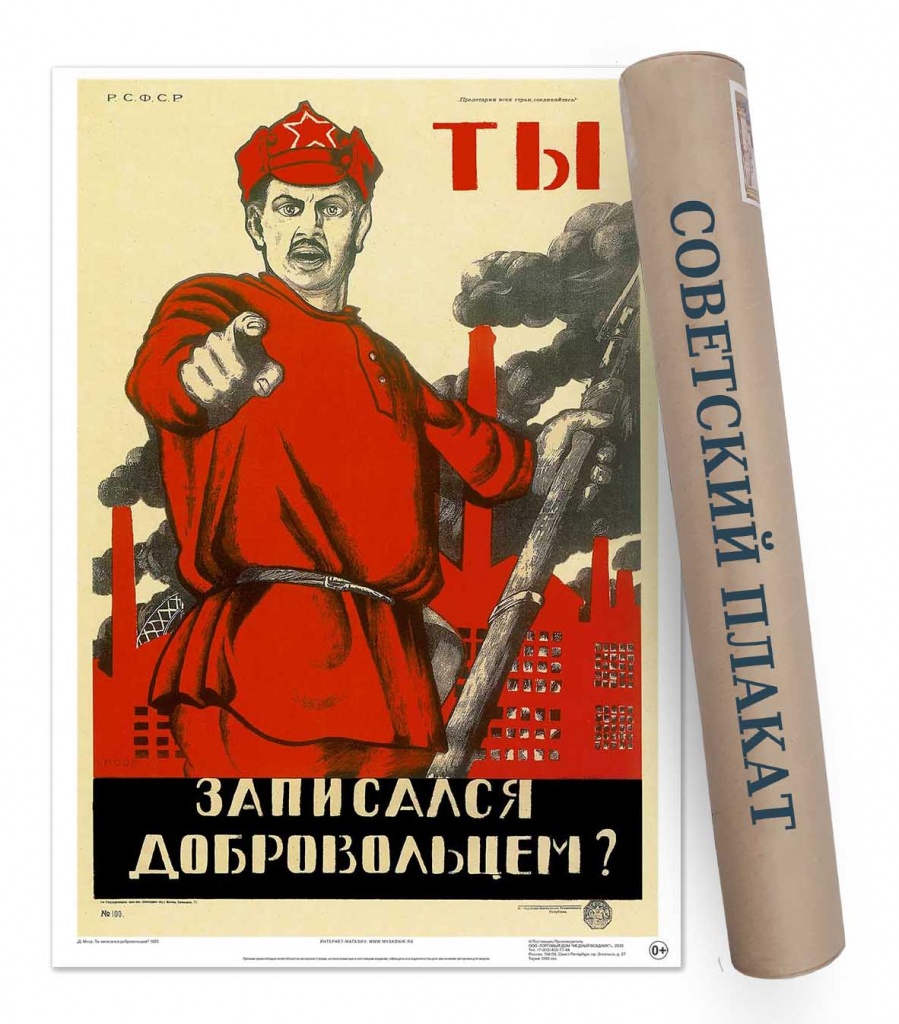 Постер Советский плакат "Ты записался добровольцем?" А2 ф.в тубусе