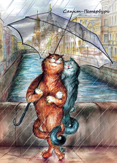 Открытка с видами Санкт- Петербурга. Кото-Питер влюбленные под зонтом [SPB-162]